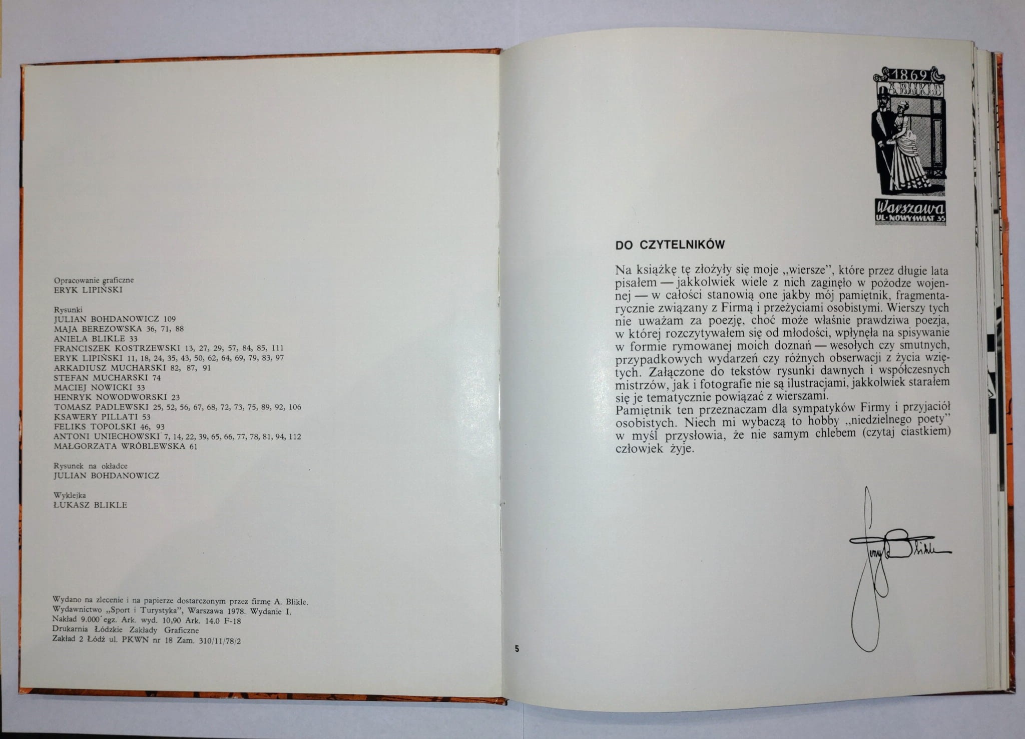 Jerzy Blikle: Pamiętnik niedzielnego poety. Wydany z okazji 110 lat istnienia Firmy A. Blikle i 50 lat mojej pracy w firmie 1869 - 1928 - 1979
